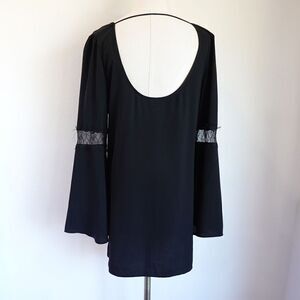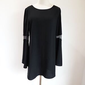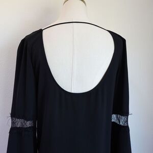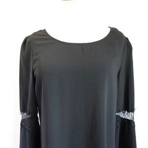 Leith Day Shift Dress with Bell Sleeves Black Lace Insert Size M