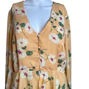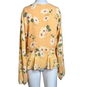 Leith Floral Long sleeve Peplum Button down Blouse Yellow Orange Medium