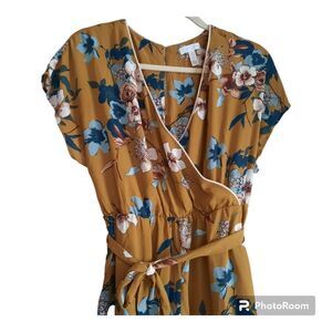 Leith Floral Wide Leg Jumpsuit Surplice Pockets Lined Belted Elastic Waist