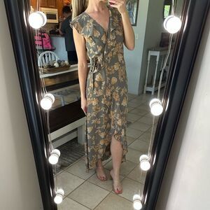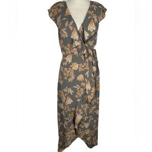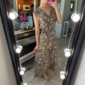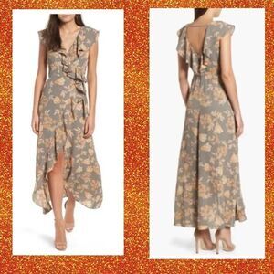 Leith Gray & Orange Gorgeous Floral Ruffle Functional Wrap Maxi Dress