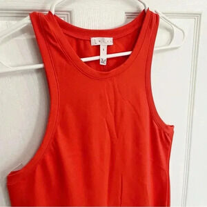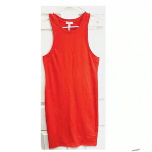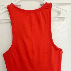 Orange-red body-con racer back tank top dress. The material is thick and luxe! Perfect dress for layering.