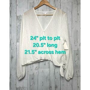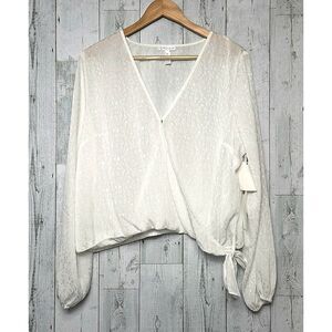 Leith Iridescent Light-Catching Sheer Floral Faux Wrap Top Blouse Sz. 1X NWT