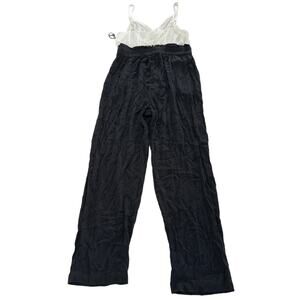 Leith Jumpsuit Womens Medium Black White Paperbag Surplice V Neck