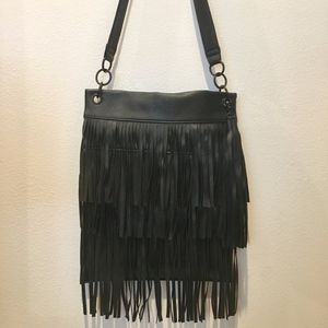 I am selling this brand new Leith Layered Fringe Leather Shoulder Bag (Faux Leather). It is in perfect condition, only used once for an event. Originally purchased from Nordstrom but is no longer sold.