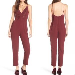 Leith Maroon Red Floral Embroidered Sleeveless Jumpsuit Size Small