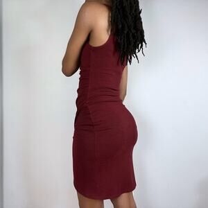 Leith Melange Wrap Ruched Dress Womens Size XS Red Dresses