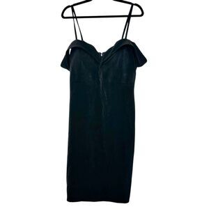 Leith Microsuede Off The Shoulder Lined Shift Dress Black Size Large