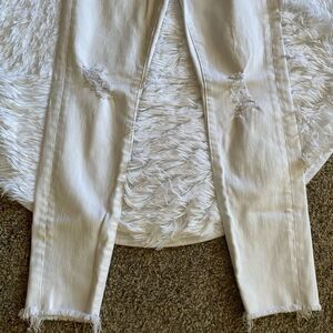 Leith Mid Rise Skinny Jeans Raw Ankle White Distressed Womens Size 26