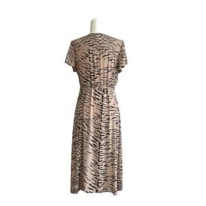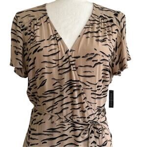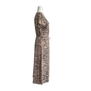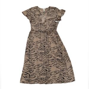 Leith Midi Dress Tan Black Animal Print Short Sleeve Wrap Dress Small NEW