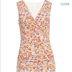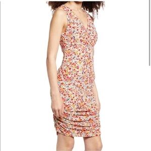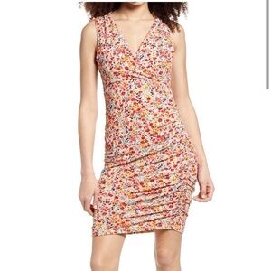 Leith Mixed Floral Print V-Neck Ruched Mini Dress