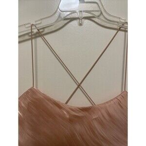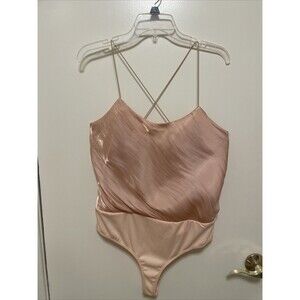 Leith NEW Dusty Metallic Pink Satin Bodysuit Flutter Top L Spaghetti Strap