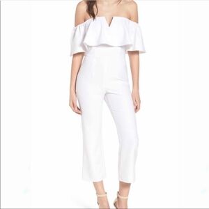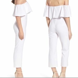 Leith Off The Shoulder Flounced Cropped Fitted Jumpsuit
