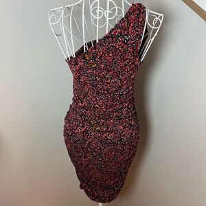 The Leith One Shoulder Midi Ditsy Floral Bodycon Pencil Mesh Dress in size S is a stylish and elegant option for a homecoming event. With its flattering one shoulder design, red floral pattern, and stretchy mesh fabric, this dress exudes femininity and sophistication. The midi length and pencil silhouette make it a versatile choice for various occasions, making it a perfect option for a special night out.
