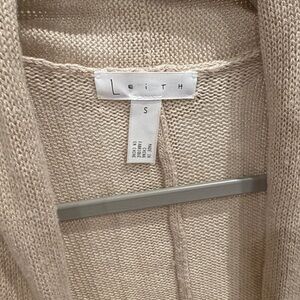 Elegant light beige knit cardigan by Leith. Ideal for casual wear. Leith Cardigan. Fair condition due to pilling on the back as pictured