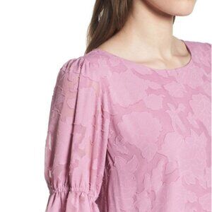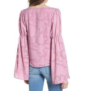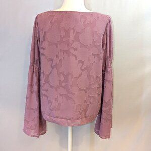 Leith | Orchid Purple Floral Patterned Sheer Overlay Top w/ Bell Sleeves | Large