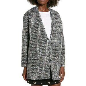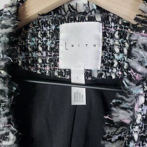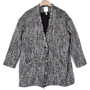 Leith Oversized Tweed Single Button Blazer Jacket L Black White Metallic Woven