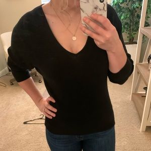 Black ribbed sweater. Gently used condition, worn a handful of times. I know the 3rd photo looks like there’s a spot on the front but there’s not, my mirror was just dirty.