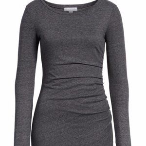 Leith Rouched Long Sleeve Dress, Charcoal Heather (2 Sizes Available) Gentle ruching at one side adds soft texture to a slinky long-sleeve dress. Scooped neck - Long sleeves - Slips on over head. Runs small; order one size up.