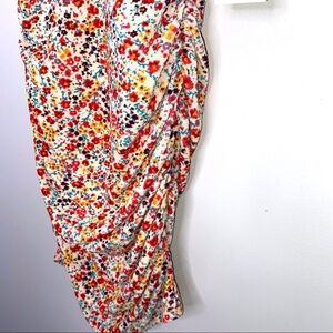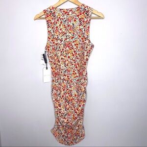 Leith Ruched Dress Women Small Surplice Mini Summer Floral Crisscross NWT *