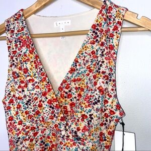 NWT Leith Ruched Surplice Mini Yellow Summer Floral Crisscross Dress Small
