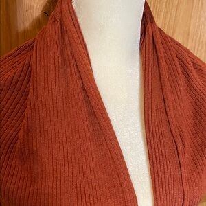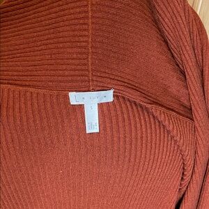 Leith Rust Open-Front Ribbed Draped Cardigan