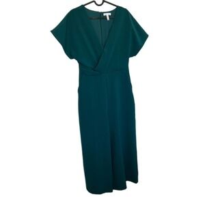 Leith Surplice Wide Leg Crop Jumpsuit Emerald Green / Teal Size Small