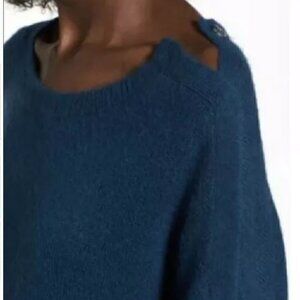 Leith Teal Blue Oversized Sweater with Snap Shoulder/Sleeve Size M