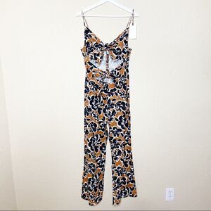 Leith Tie Front Linen Floral Jumpsuit NWT