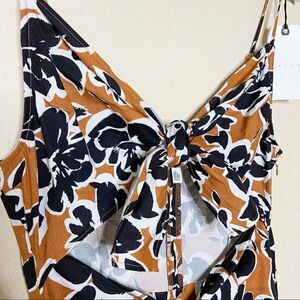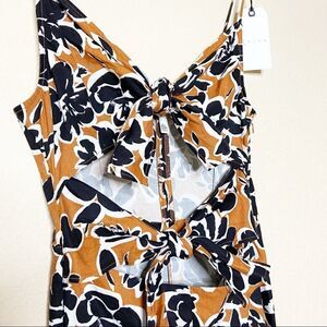 SUPER CUTE jumpsuit from Leith new with tags. Floral print. Ties in front at cleavage and waist. Adjustable spaghetti straps. Side zip closures. So fun! All measurements are approximate and taken flat.