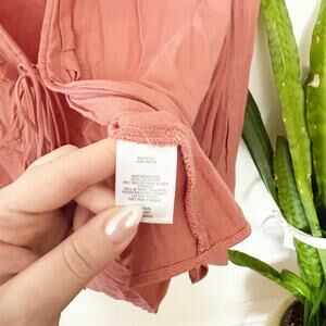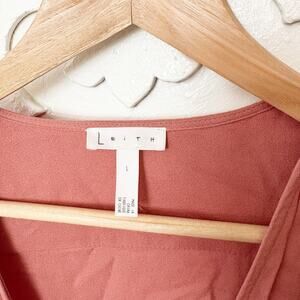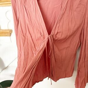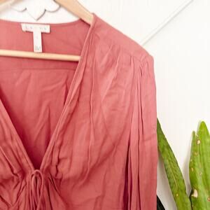 Leith Tie Front Long Sleeve Blouse Dusty Rose Rayon Soft Flowy Top Size L Large