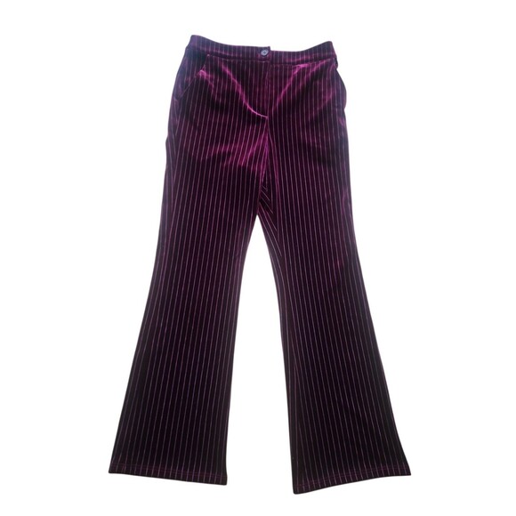 Leith Vampy Velvet Flare Pants Womens Wine Pin Striped Whimsigoth Stretch