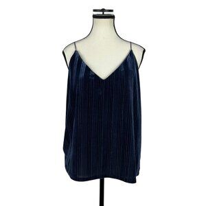 Leith Velvet Cami Top Women XL Blue Pleated Tank Spaghetti Strap Y2k Eveningwear