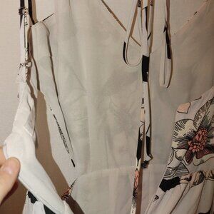 Leith V-neck Jumpsuit Light Gray Floral Small S New Cutout Pants