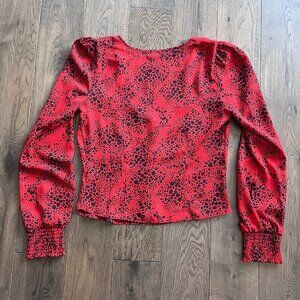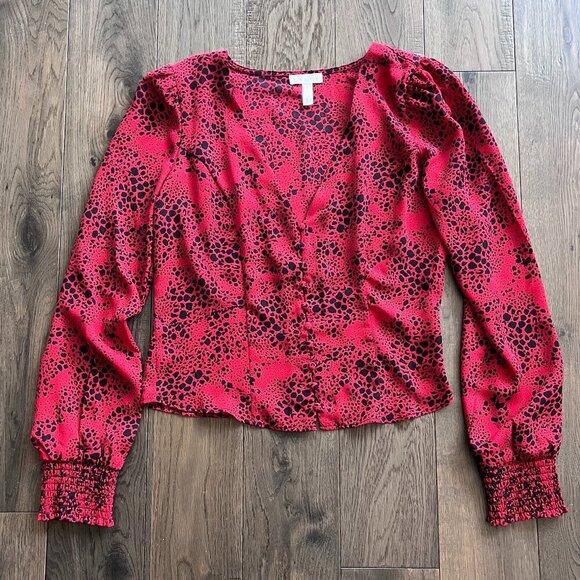 Leith Whimsigoth Red Black Snakeskin Print Blouse Size S Button Front Crepe