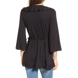 Leith Women Ruffle V-Neck Wrap Top Black Size S