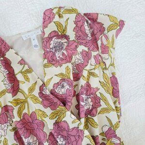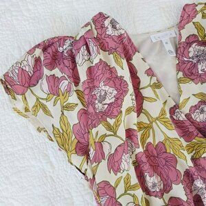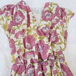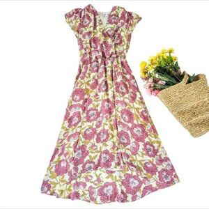 Leith Women's High Low Maxi Dress Size XS White Pink Floral Flutter Sleeves Boho