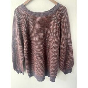 This Leith sweater features an oversized, relaxed fit with a crew neck and long sleeves. The sweater comes in a multicolor pattern with purple and orange tones, perfect for casual occasions in the fall, winter, or spring. The material is a blend of polyester and acrylic, providing comfort and warmth. The sweater has a stylish cut-out back and is available in regular sizing (see measurements for sizing). Ideal for women who prefer a pullover style, this sweater is a must-have for any fashion-forward wardrobe.