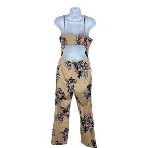 Leith Womens Size Small Floral Cut Out Linen Blend Jumpsuit