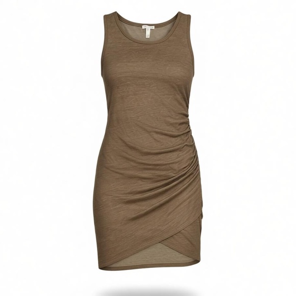 Leith Women's Sleeveless Dress Ruched Knee Length Tank Dress Light Brown Size Me