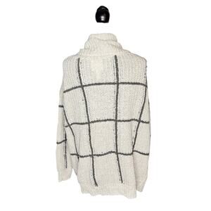 Leith Women's XS/S Gray Windowpane Open Cardigan Pockets Chunky Knit Sweater