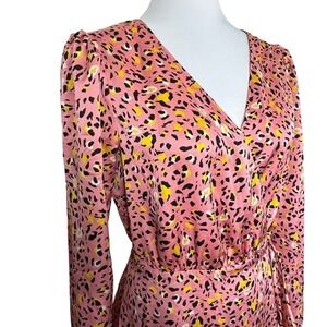 Leith Wrap Maxi Dress Long Sleeve Pink Leopard Print Size S