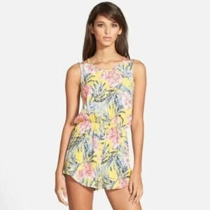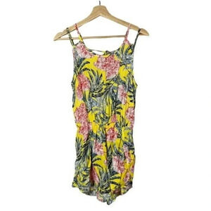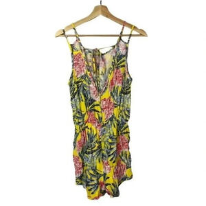 Leith Yellow Tropical Floral Mini Shorts Romper S