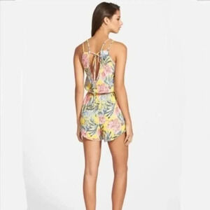 Leith Yellow Tropical Floral Mini Shorts Romper