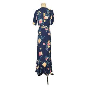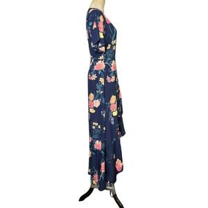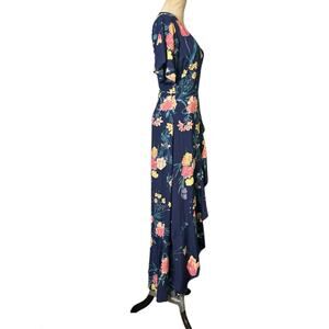Leith blue floral short sleeves true wrap hi low dress size XS
