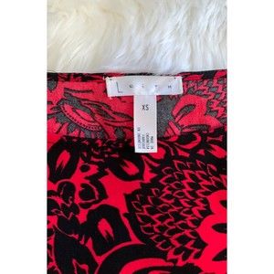 Excellent condition Leith size XS black and red shift dress with a slight hi-low hem and flowy sleeve.