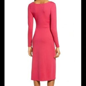 Leith Dress Long Sleeve Midi Pink Slit Cocktail Casual Neutral Trendy