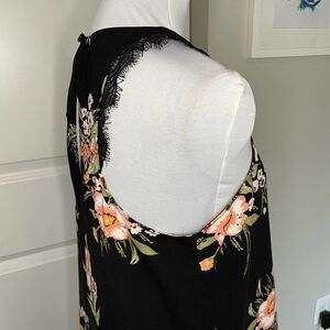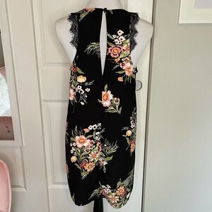 Above the knee dress features a keyhole back and lace detail. Lightweight and perfect for summer.