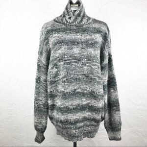 Leith Gray Marled Chunky Oversized Marled Stripe Turtleneck Knit