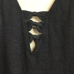 Sweet bows put a charming spin on the low-cut neckline of this textured suit that'll be at home on even the most exclusive beaches.
