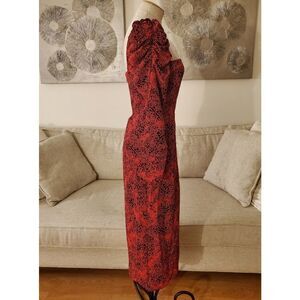 Leith Red Spatter Print Square Neck Midi Dress size Small.